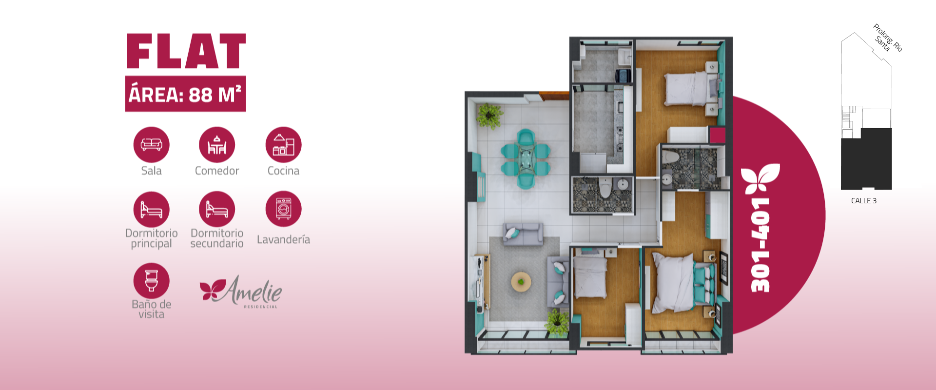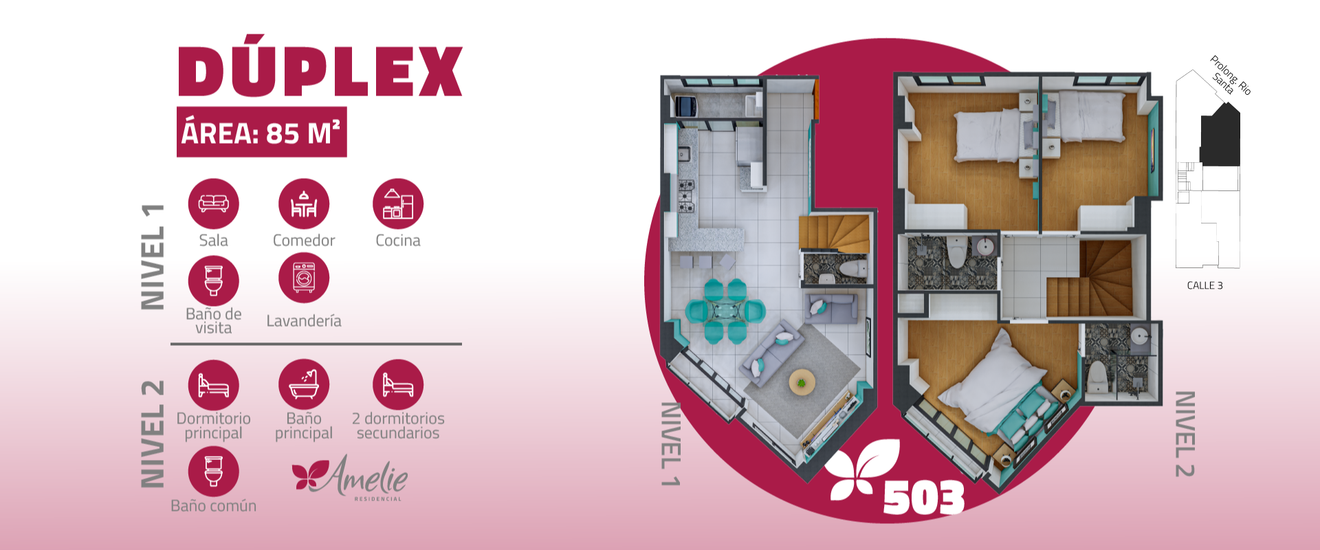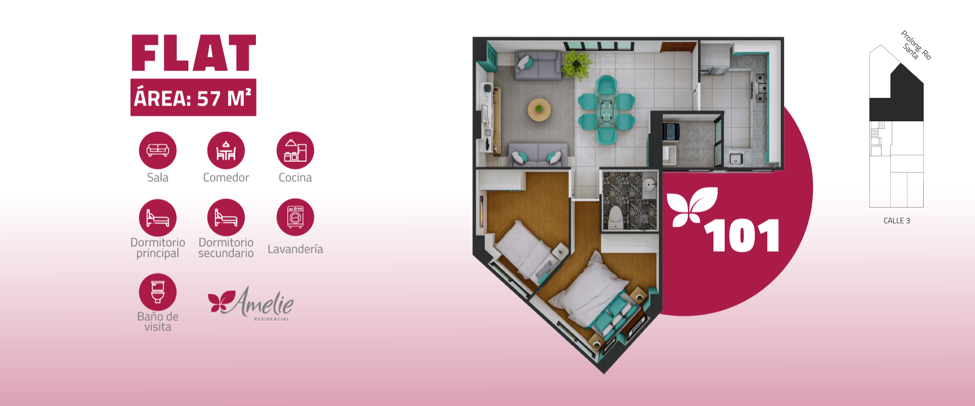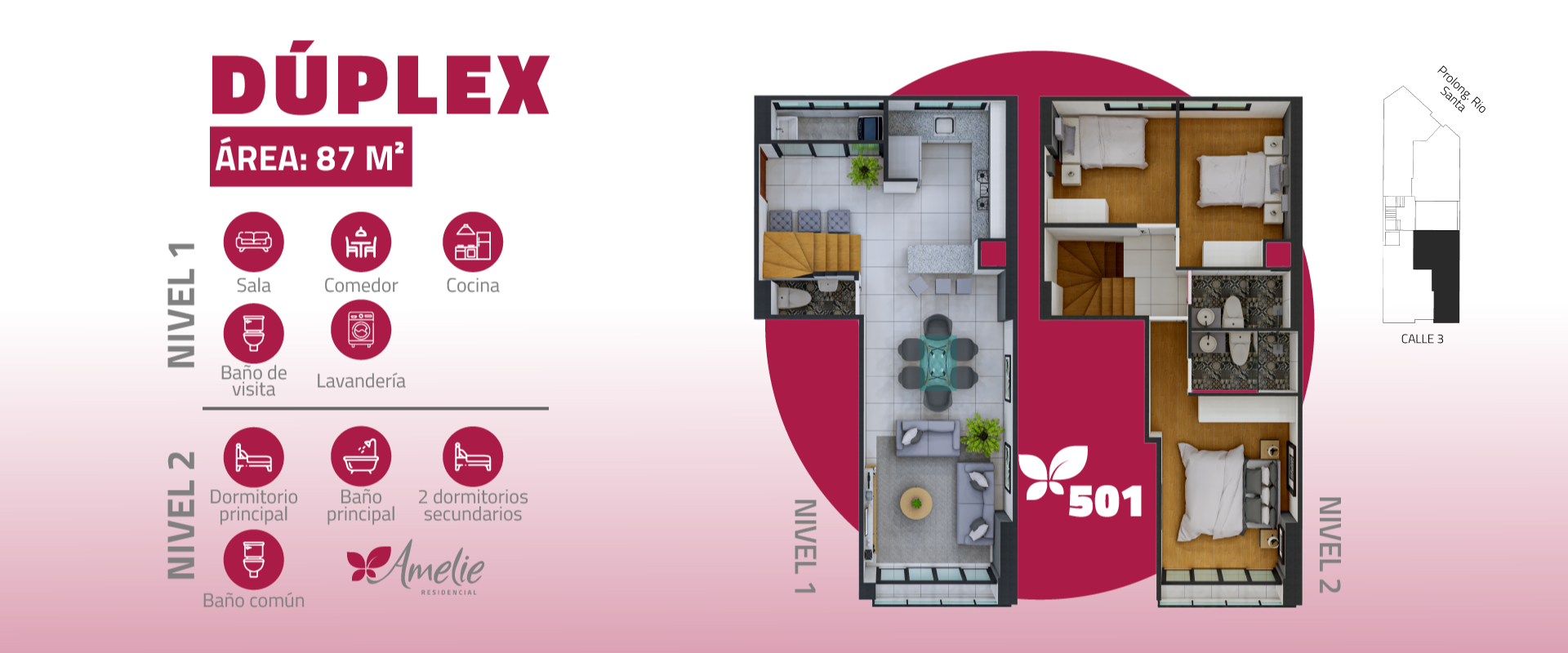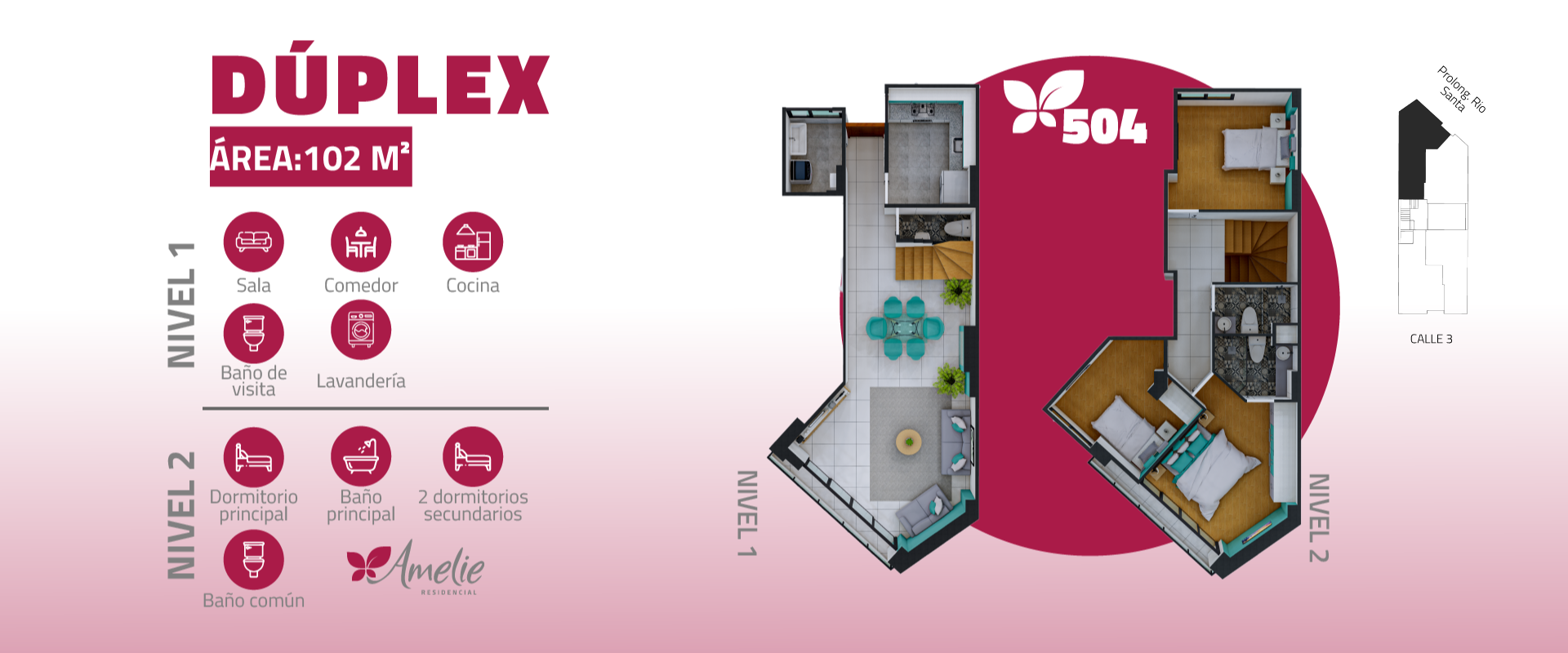 Edificio multifamiliar de 11 departamentos con vista a la calle ,entre Flat y Duplex con 2 y 3 dormitorios, desde 57m2 hasta 102 m2. Distribuidos en 6 pisos y semisotano de estacionamientos.